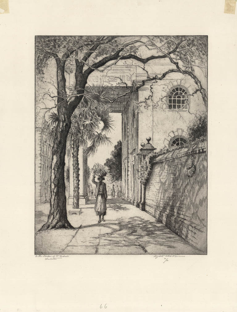 After school, Verner spent a year teaching in Aiken, South Carolina before returning to Charleston. She married in 1907 and dedicated herself to raising her children, although she continued to draw in her spare time. The untimely demise of her husband in 1925 prompted the artist to pursue an artistic career in order to support her family. She produced a wonderful body of work focused around the culture, architecture and people of Charleston. Her work was utilized in a number of publications, including "Prints and Impressions of Charleston" in 1939 and "Mellowed by Time: A Charleston Notebook" in 1941.