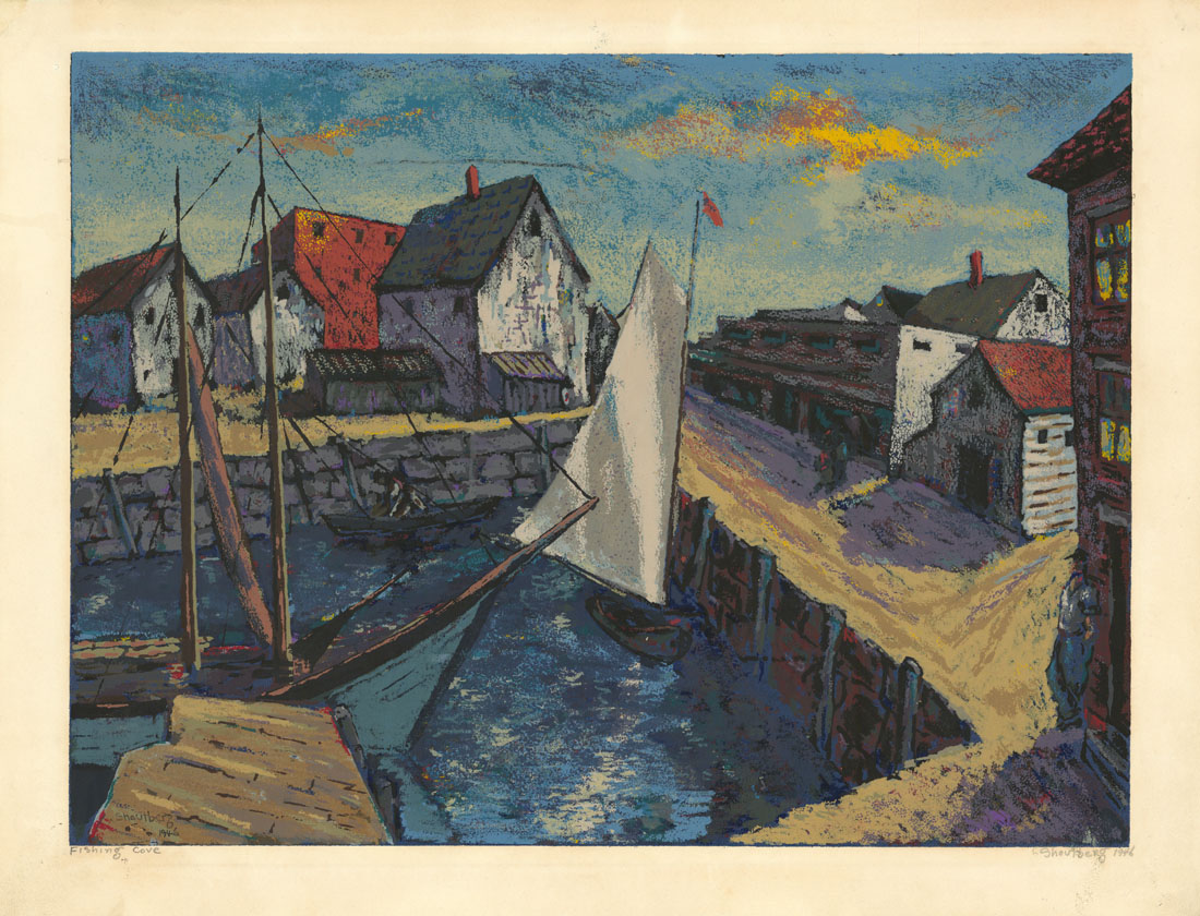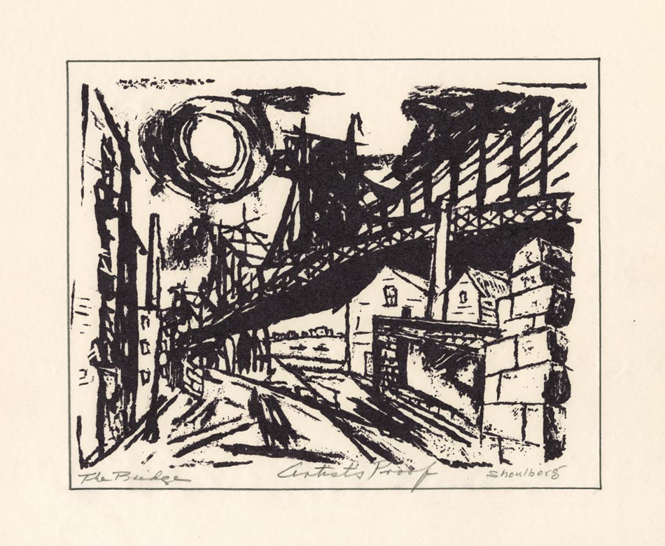 Harry Shoulberg was an American expressionist painter and printmaker, born in Philadelphia, Pennsylvania. He became a member of the National Serigraph Society after the Works Progress Administration dissolved in 1943. His work has won numerous awards and was exhibited widely from the 1940-1960s.