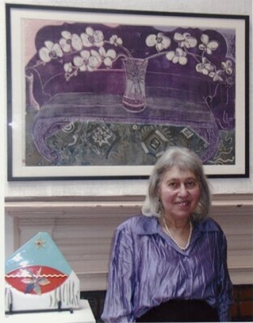 “My work with woodblock prints explores the beauty of the wood and its transformation into a print. The empty block is a challenge, and the cutting of the wood with my wonderful tools inspires me to go beyond the block. My love for color explores the exquisite qualities of the flowers, and inking the blocks with a zillion inks brings out the amazing concept of each work. I hand-print each block using a Japanese baren on special handmade papers I select for the print. These prints are in limited editions.”