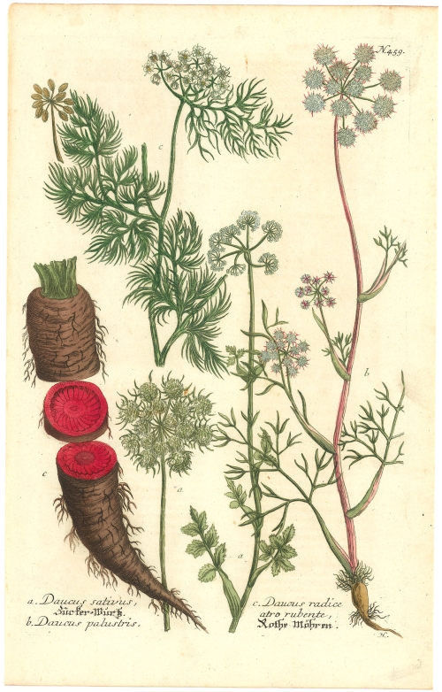 As one might expect from an apothecary of the 18th century, Weinmann had a deep seeded interest in botany. This interest led to him taking on the ambitious project of creating "Phytanthoza Iconographia." Although not an artist himself, Weinmann worked as the editor and director, hiring the artists he needed to bring his project to fruition. Georg Dionysus Ehret (1708-1770), Bartholomaus Seuter (1678-1754), Johann Jakob Haid (1704-1767) and Johann Ridinger (1698-1767) were among those he commissioned. The series is historically important not only because of its diversity, depicting over 4,000 plant varieties on 1,025 plates, it was the first notable botanical book to utilize printed-color techniques.