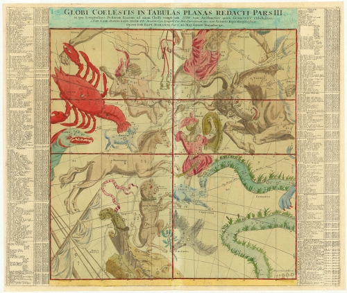 One of Johann Gabriel Doppelmayr most famous works was "Atlas novus coelestis" published in 1742. The book was "a collection of diagrams with explanations intended as an introduction to the fundamentals of astronomy. Besides star charts and a selenographic map, the Atlas includes diagrams illustrating the planetary systems of Copernicus, Tycho, and Riccioli; the elliptic theories of Kepler, Boulliau, Seth Ward, and Mercator; the lunar theories of Tycho, Horrocks, and Newton; and Halley’s cometary theory." - Encyclopedia Britannica