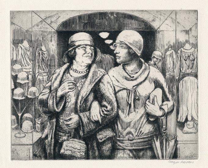 Kenneth Hayes Miller was an American painter, printmaker and influential teacher at the Art Students League of New York. Born in Oneida, New York, Millier was trained at the League and the New York School of Art, where he learned from the likes of William Merritt Chase and Kenyon Cox and Henry Siddons Mowbray. Miller had a fondness of combining old master techniques with contemporary scenery - such as women shopping in department stores - which he passed onto his students during his forty years of teaching at the League. Reginald Marsh, Paul Cadmus and Isabel Bishop are just three of the artists he taught and helped inspire over the years.