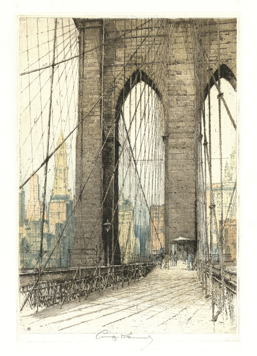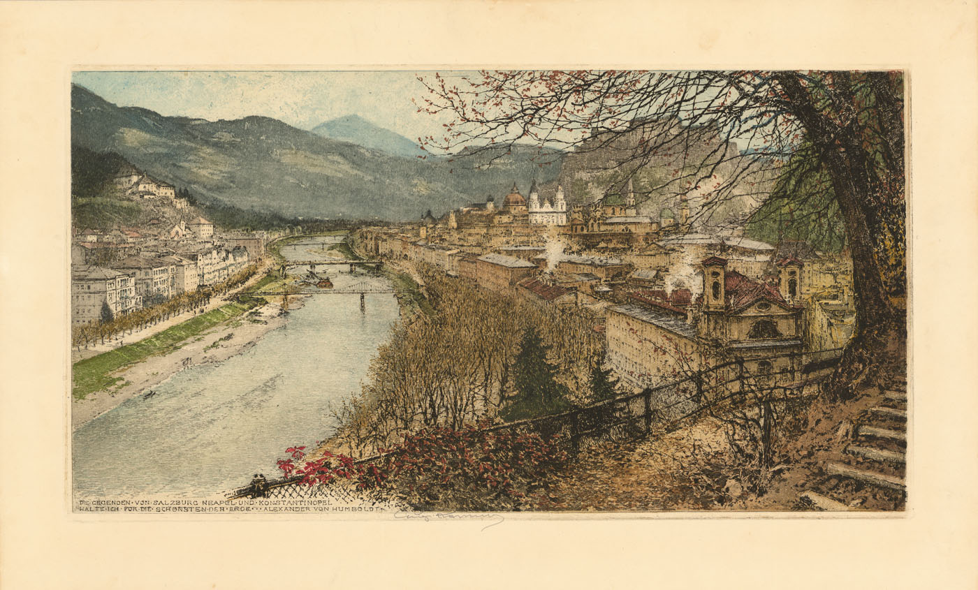 Luigi Kasimir was an Austro-Hungarian printmaker and painter, born in a town known today as Ptuj, Slovenia. He was raised in a family of accomplished artists, both his father and grandfather being notable painters in their day. He studied at the Vienna Academy of Art, where he discovered a love for etching under the tutelage of William Unger. He combined this passion with his love of painting to become one of the early pioneers of color etching. Etchings were traditional handcolored after they were printed, but artists, such as Kasimir, stove to find a way to encompass color right into the printing process. Kasimir's multi-plate color etching process helped change the world of etching.