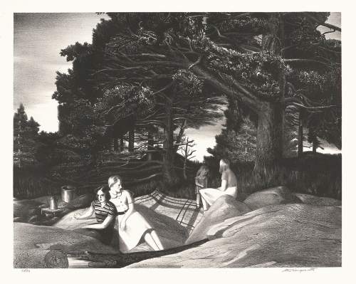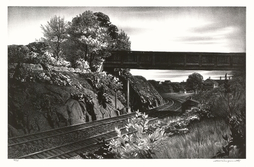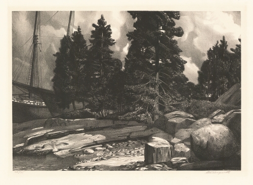 Stow Wengenroth is a well known American artist who created wonderful images of New England, New York City, and Long Island. He was born in Brooklyn, New York, on July 25, 1906, to Frederick Wengenroth, an architect, and Isabelle Stow, a textile designer. He studied at the Art Students League in 1923 with George Bridgman, then at the Grand Central School of Art with Wyman Adams. During the summers in the 1920’s, he would go to Woodstock, New York, to work with John Carlson or to Eastport, Maine, and work with George Ennis. It was Ennis in 1929 who recommended that Wengenroth should consider working in lithography. He felt that his drawing style suited the medium. In 1931 Wengenroth published his first lithographs - all images in and around Eastport, Maine. He had his first one-artist exhibition in 1931 at Macbeth Gallery showcasing his lithographs and drybrush drawings.