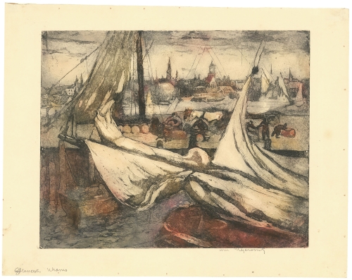 William Meyerowitz was a painter and printmaker born in Gezelitz, Ukraine. His early training in art came as a sign painter in Gezelitz. After his family immigrated to the United States in 1908, he took up study at the National Academy of Design, where he met etching teacher William Mielatz. Meyerowitz credited Mielatz in teaching him multi-plate color etching.