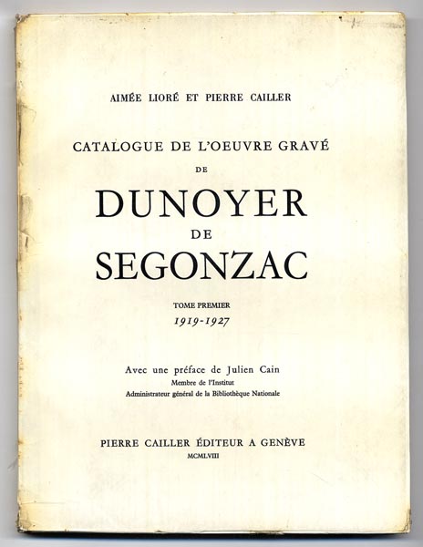 Catalogue de l'Oeuvre Grave de Dunoyer de Segonzac. Tome Premier 1919 -1927.