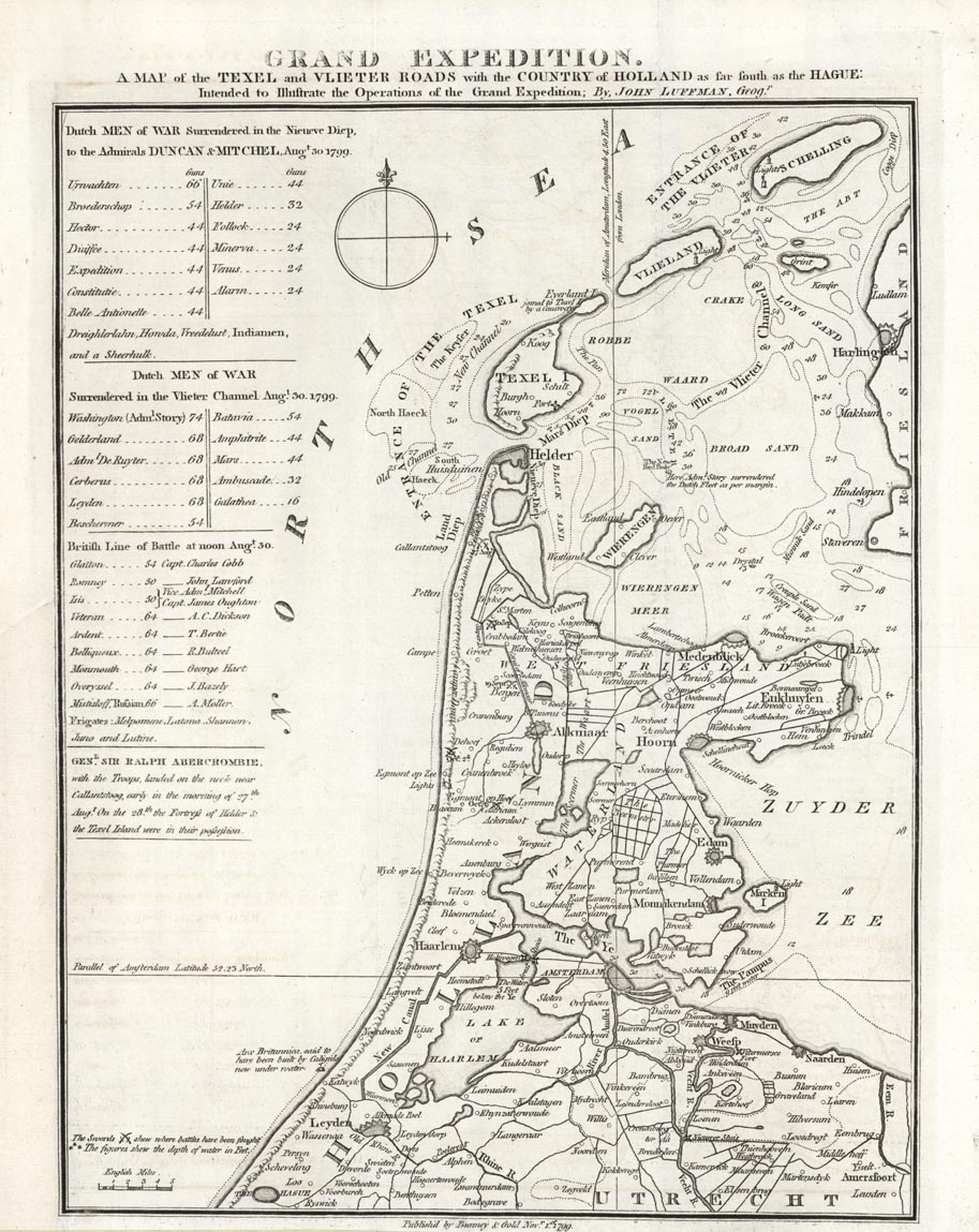 Grand Expedition. A Map of the Texel and Vlieter Roads with the Country of Holland as far south as the Hague.