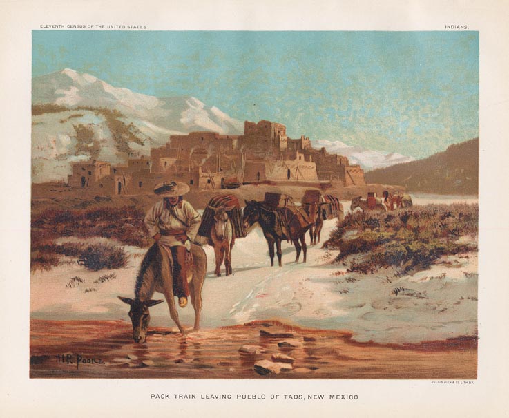 Pack Train Leaving Pueblo of Taos, New Mexico.