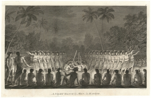John Webber was the official artist of Cook's Third Voyage. The Resolution sailed from Plymouth in July 1776 and successively visited Cape Town, October; Tasmania, January 1777; Charlotte's Sound New Zealand, February; Tonga and Pacific Islands, March-August; Tahiti, August; Hawaii, January 1778; Nootka Sound, March; Alaska, June-July; Bering Straits, August; September-November, returned to Hawaii by way of the Aleutian Islands. In March 1779, after Cook's death, the expedition sailed north again to Kamtschatka and the Bering Straits before returning to England by way of Macao, Batavia and Cape Town.