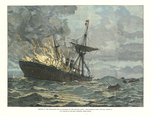 Burning of the Steam-Ship City of Montreal on the Atlantic Ocean: The Mainmast Going, Two P.M., August 11.