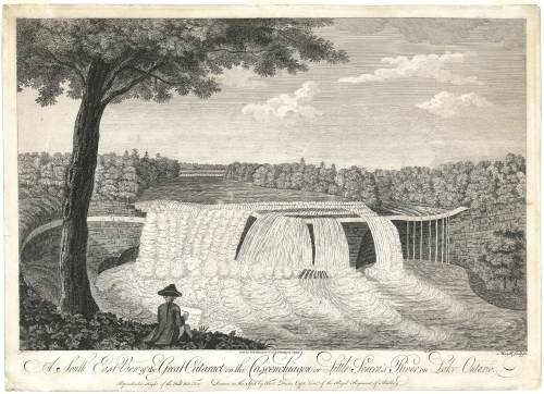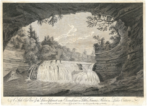 Thomas Davies, F.R.S. F.L.S., (c.1737-1812) British officer in the Royal Regiment of Artillery. In 1755 while at the Royal Military Academy, Woolwich, he received training in topographic drawing. Soon after he served four tours in the Americas during the French and Indian War. In PICTURING AMERICA, Gloria Deak writes "Davies produced a sizable number of North American views during his extensive posting abroad as an officer in His Majesty's forces" (p. 105). At the conclusion of the French and Indian War, he spent many years documenting, through maps and watercolors, the regions surrounding Lake Ontario. An unsophisticated and unschooled approach to "drawing on the spot", as well as the precisionist hand of a true naturalist, allowed Davies his unique expression. Upon his return to England he published a series of six folio sized engravings. This portfolio is extremely rare and was likely privately published.