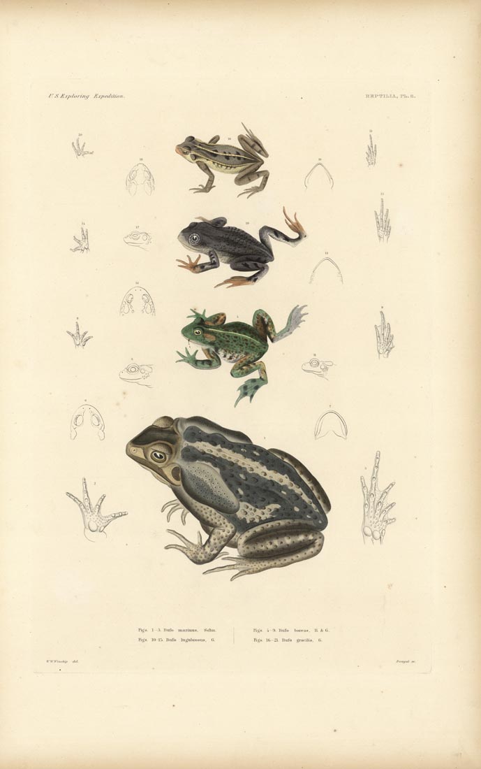 Reptilia, Pl. 6. Figs. 1-3. Bufo marinus. Figs. 4-9. Bufo boreas. Figs. 10-15. Bufo lugubrosus. Figs. 15-21. Bufo gracilis.