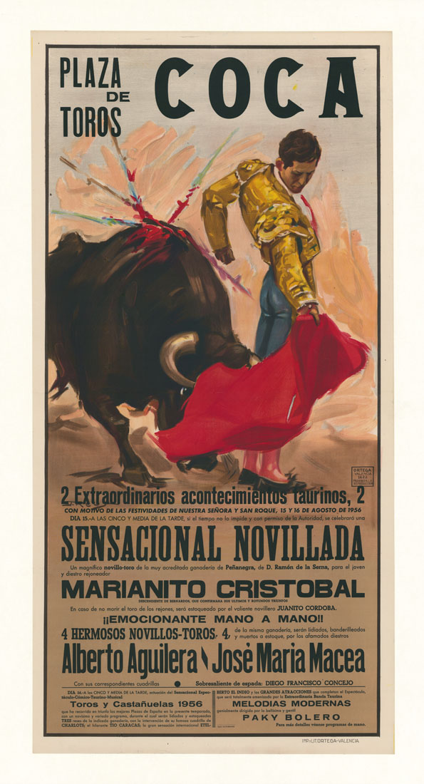 In the 1940s, Reus was hired as a designer at the renowned Ortega Lithographic Workshop, the epicenter of Spanish bullfight poster production. There, he met Roberto Domingo, a leading figure in the genre, who became both mentor and model for his mature style. Reus's work from this period demonstrates a dynamic synthesis of draftsmanship, atmosphere, and theatrical flair, hallmarks of the Spanish cartel taurino tradition.
