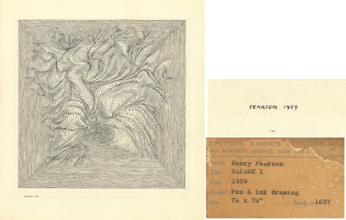 Pearson returned to the United States in 1953 and enrolled at the Art Students League in New York where he studied with Reginald Marsh. The Op-Art Movement was beginning to gain popularity and Pearson’s interest in topography and the landscape lead him to experiment with optical effects and his own fine line drawings. His artwork was included in the Museum of Modern Art exhibition The Responsive Eye. (1965). He later received a retrospective exhibition at the North Carolina Museum of Art in 1969.