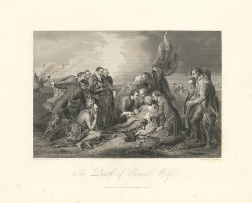 West was one of the founders of the Royal Academy of Arts, established in 1768, and in 1771 the Academy exhibited one of his most famous paintings "The Death of General Wolfe." The piece was particularly noteworthy, and controversial, because it was the first major painting of a contemporary event to dismiss classical norms - the soldiers are depicted in modern uniforms instead of classical drapery. General Wolfe had been mortally wounded at the Battle of Quebec on September 13, 1759 during the French and Indian War (also known as the Seven Years' War).