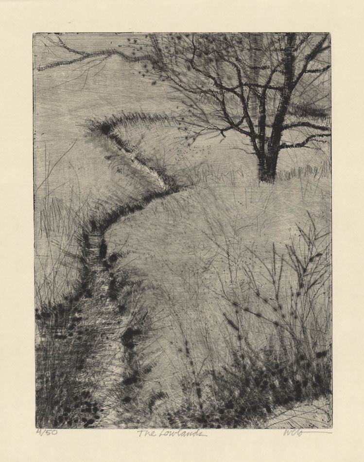 When my career began in 1974, I learned by doing. Northeastern Iowa is a visually stimulating place, and, living there, I drew the things around me. The places that I drew became the subjects of my etchings. It became more than drawing places, however. My survival was determined by what I made. Evolving from looking at places came seeing. Seeing meant that from daily observation and translation through drawing, I developed the skill of looking at the world in terms of two-dimensional design. Ideas are of great importance, and, as an artist, being able to communicate those ideas is of the greatest importance. This is something that I have attempted throughout my career. Looking is something that I was born with. Seeing, and communicating what is seen, is something that has been learned."