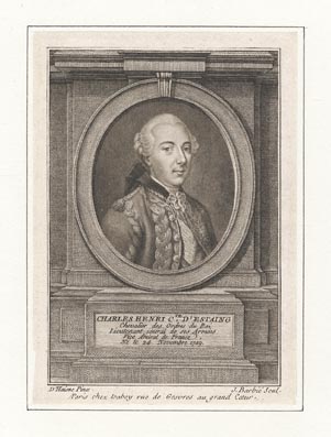 DESCRIPTION: Charles Henri D’Estaing (1729-94) served as a French admiral who spent his early military career in India. He went on to become a sea officer and commanded the French West Indies during the American War for Independence. A former governor of the Antilles, Charles Henri was able capture Grenada in 1779. Less successful was his attack on Savannah, Georgia, from which he sustained an injury serious enough to send him back to France. Upon returning to France, Charles Henri supported the Revolution and was made the commander of the National Guard at Versailles and then eventually made the Admiral of France in 1792. He was arrested during the Terror, and guillotined.