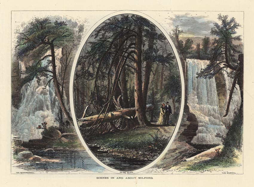 DESCRIPTION: Triple view of the Raymondskill, the glen and the Sawkill River. From "Picturesque America, or the Land We Live In." Edited by William Cullen Bryant.