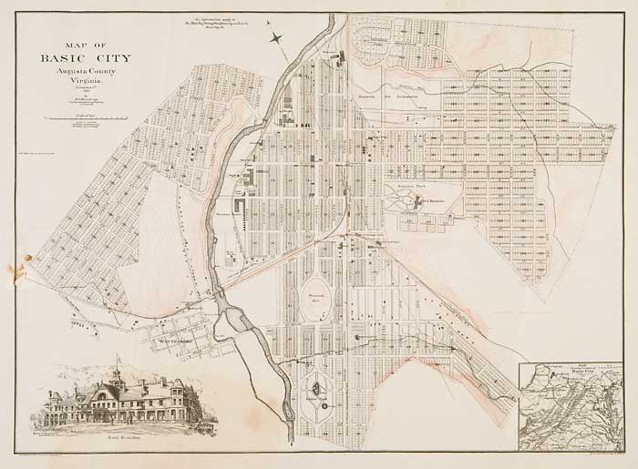 DESCRIPTION: Basic City, now known as Waynesboro, is located in the Shenandoah Valley, Augusta County. Basic City was incorporated in 1890. The town was named for a new process of steel manufacturing. In 1924, Basic City consolidated with the adjacent Town of Waynesboro, the new name for the town was called Waynesboro-Basic. It was later renamed just "Waynesboro." The draftsman for this map, David C. Humphreys, was of professor of applied mathematics and later engineering at Washington and Lee University in Lexington, Virginia.