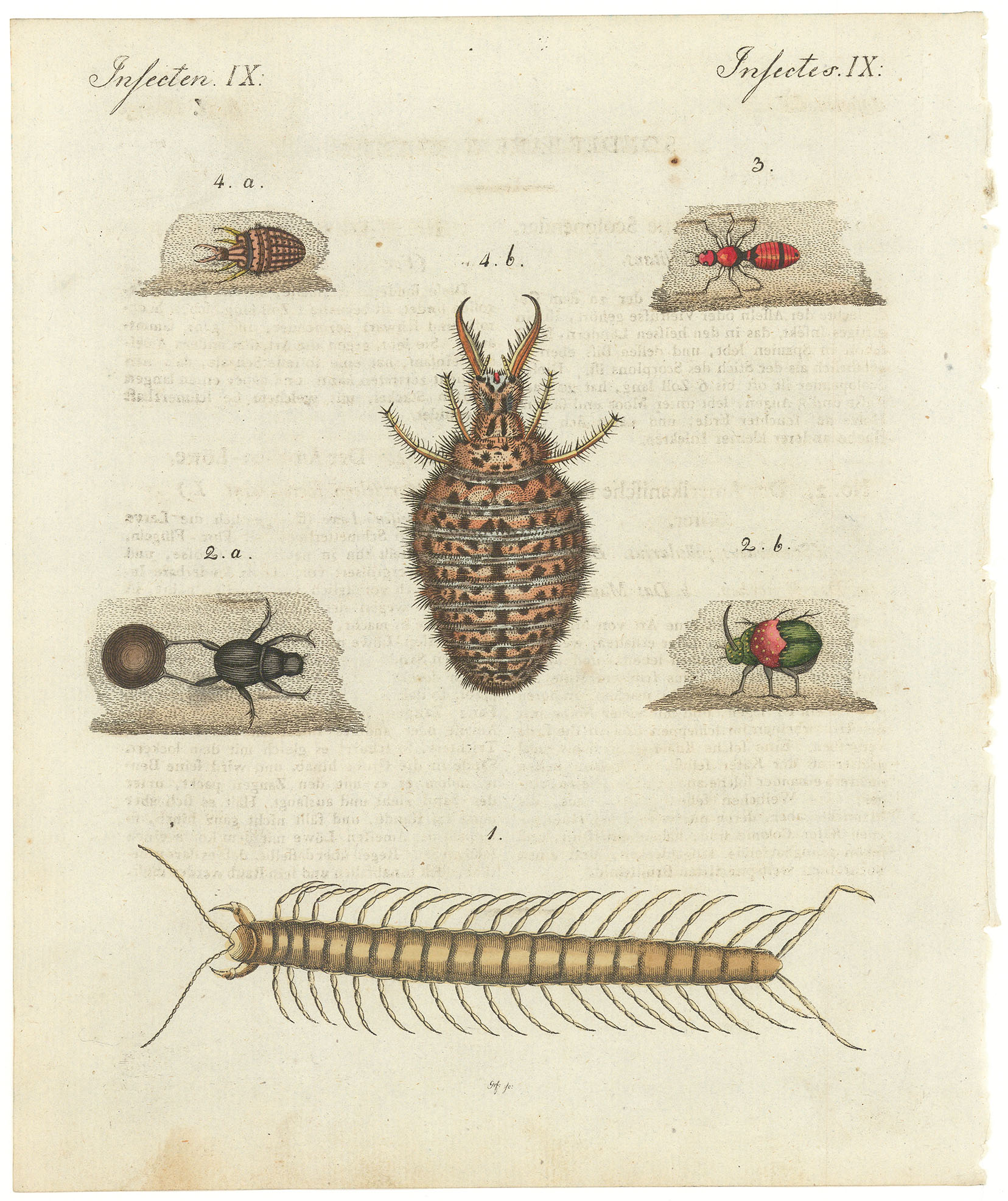 DESCRIPTION: A centipede, beetle,ant and ant lion. From "Bilderbuch fur Kinder" by F. J. Bertuch. An elaborate pictorial encyclopedia, Bertuch's work was designed to teach children about the physical world - its geography, natural phenomena, flora and fauna, as well as its peoples and their mores at work and leisure. <br><br>