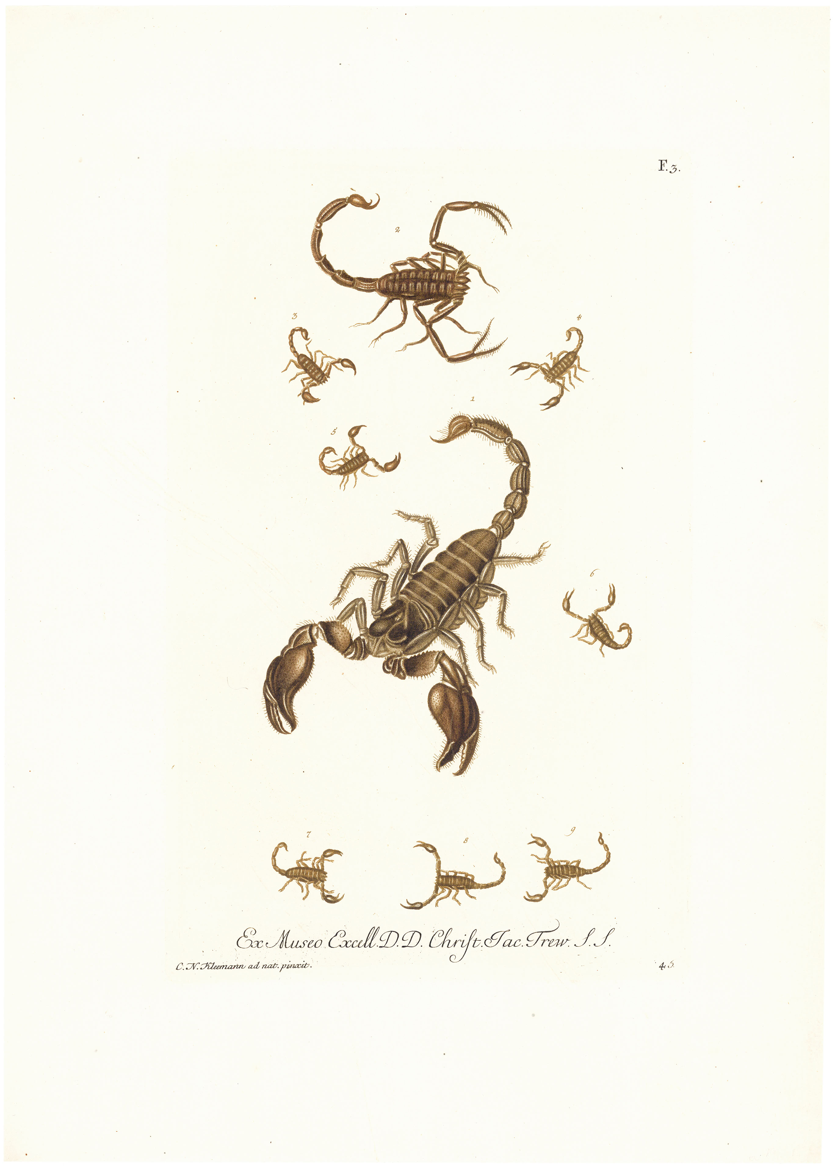 DESCRIPTION: From "Deliciae Naturae Selectae...," by Georg Wolfgang Knorr, a German paleontologist, painter and engraver. "Ex Museo... Jac. Trew" refers to the fact that the specimens used for this print came from the collection of a wealthy Nuremberg physician, J. Trew, who assembled a group of artists and scientists and was instrumental in the production of this natural history book.