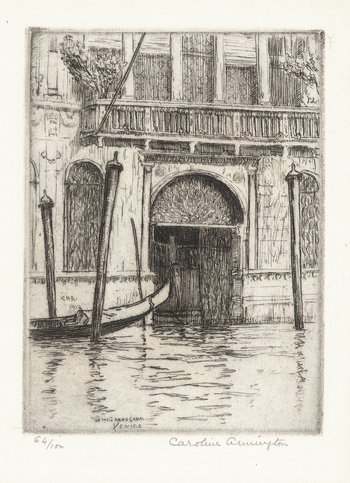 DESCRIPTION: The Grand Canal- Venice Italy. Inscribed "64/100". Signed in pencil. Monograph "C.H.A. 1912" just above gondola.