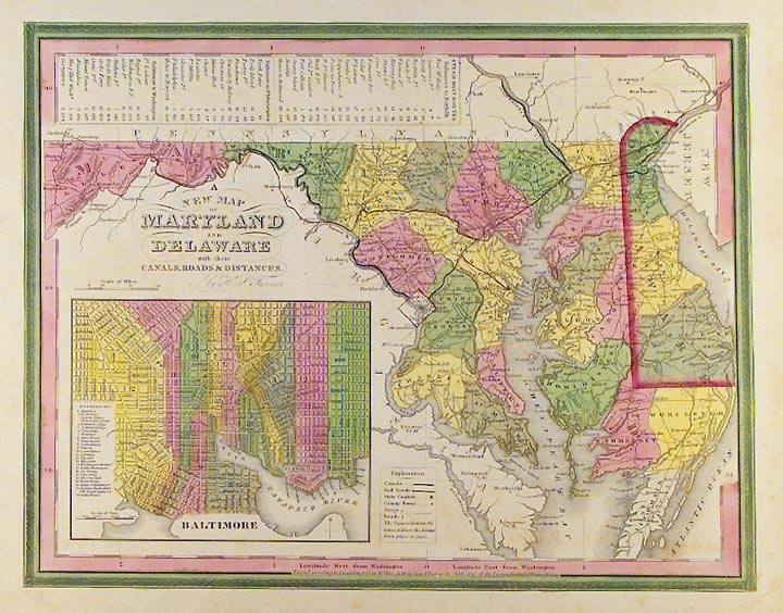 DESCRIPTION: A good mid-century map of the state, with a large inset of Balitmore and a chart of steamboat routes between Baltimore and other cities.