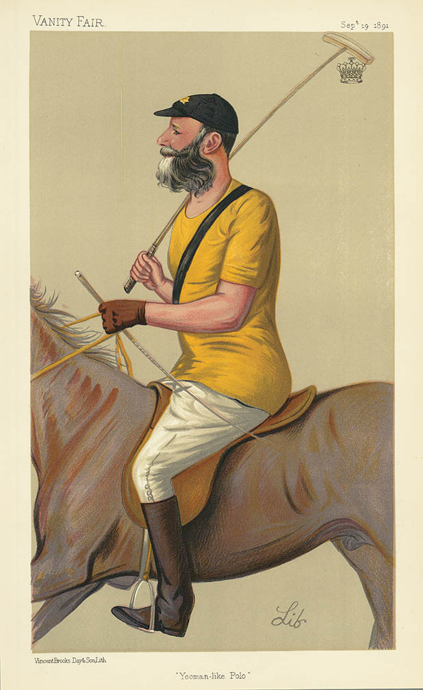 DESCRIPTION: An image of The Earl of Harrington after a drawing by "Lib". Printed by Vincent Brooks Day & Son. One of a fine group of five portraits of prominent Polo players produced by Vanity Fair.