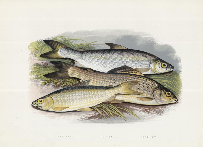 DESCRIPTION: From "British Freshwater Fishes," by Rev. William Houghton. Some of the chromolithographs in this book were heightened with silver or gold.