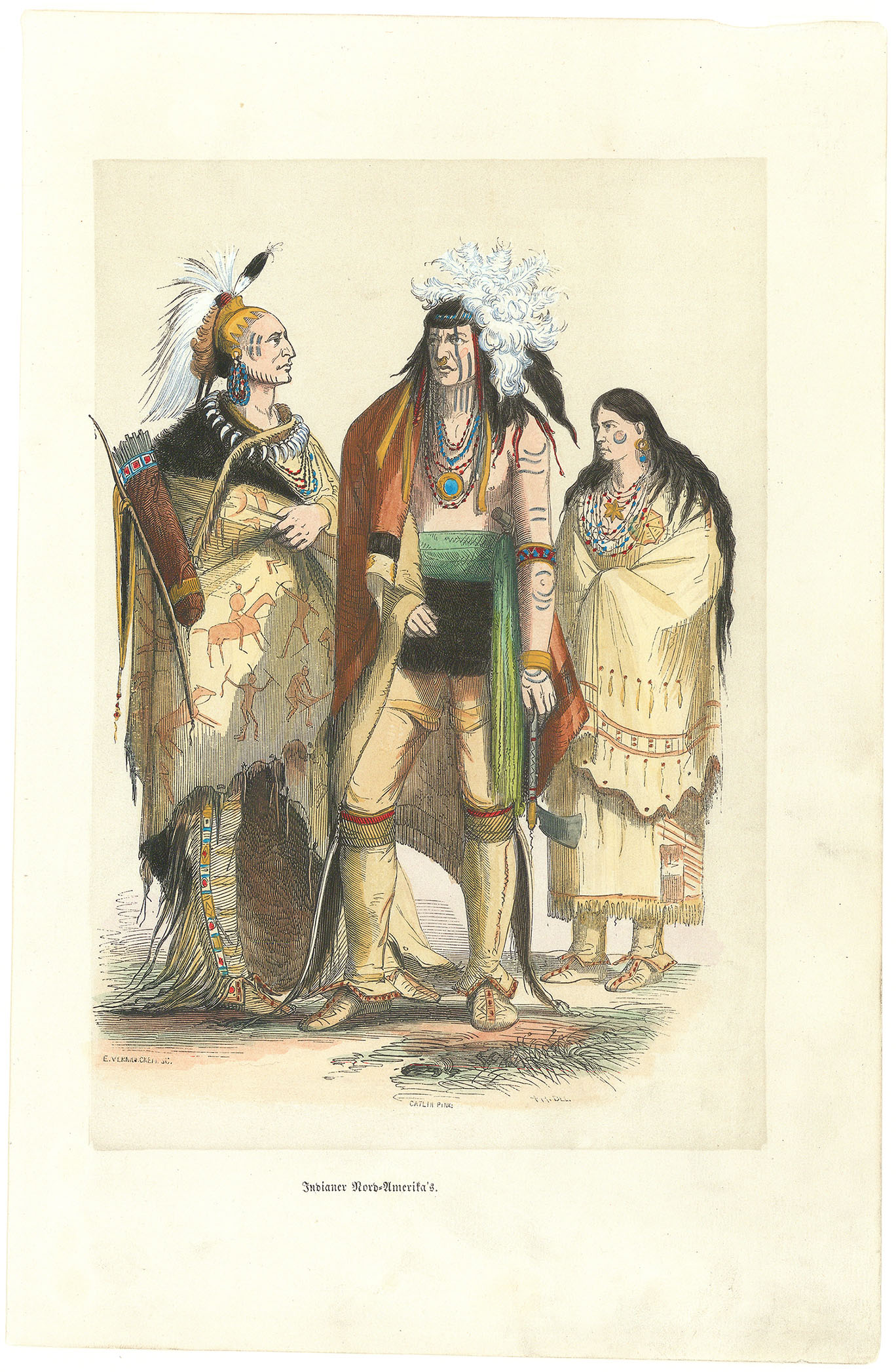 DESCRIPTION: Scarce hand-colored toned line lithograph after George Catlin. Created by H. Hendrickx and E. Vermorcken for Die Indianer Nord-Amerikas by Dr. Heinrich Berghaus. This was the German edition of Catlin’s Letters and Notes on the Manners, Customs and Condition of the North American Indians. Published by Carl Muquardt, Brussels, Leipzig and Gent, 1851. The lithographs are adapted from those in Catlin’s own Letters and especially in his large 1840s portfolio.