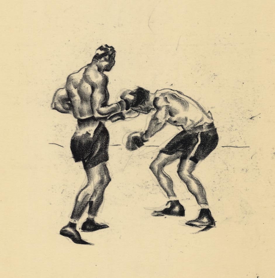 DESCRIPTION: Unsigned. From sketch pad showing the famous Joe Lewis and James J. Braddock heavy weight boxing match on May 13, 1937.