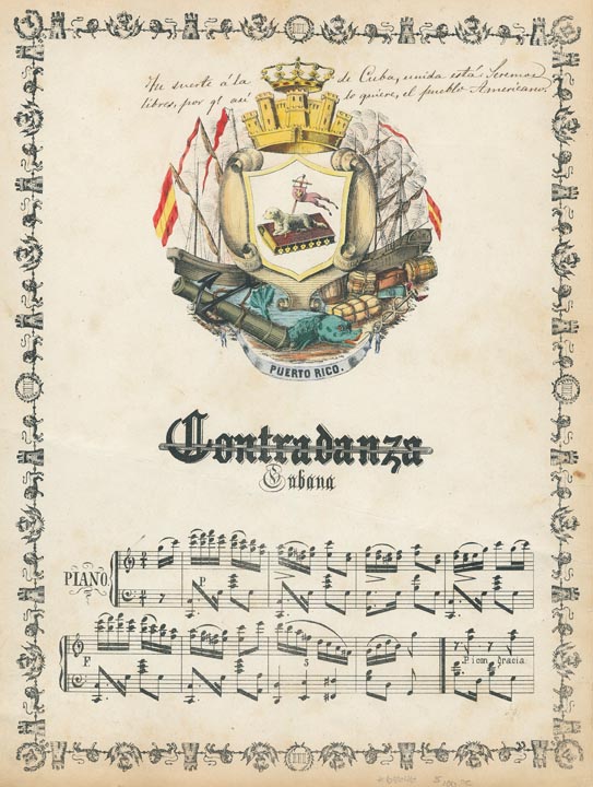 DESCRIPTION: From "The Album Regio" by Don Vicente Diaz de Comas published in Havana, Cuba. Sheet music showing all the different Coats of Arms from the Crown of Spain. Vicente Diaz de Comas, lawyer & composer wrote most of the music which incorporates contradanzas, polkas, hymns, and marches.