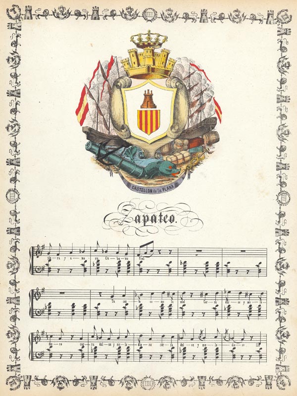 DESCRIPTION: From "The Album Regio" by Don Vicente Diaz de Comas published in Havana, Cuba. Sheet music showing all the different Coats of Arms from the Crown of Spain. Vicente Diaz de Comas, lawyer & composer wrote most of the music which incorporates contradanzas, polkas, hymns, and marches.