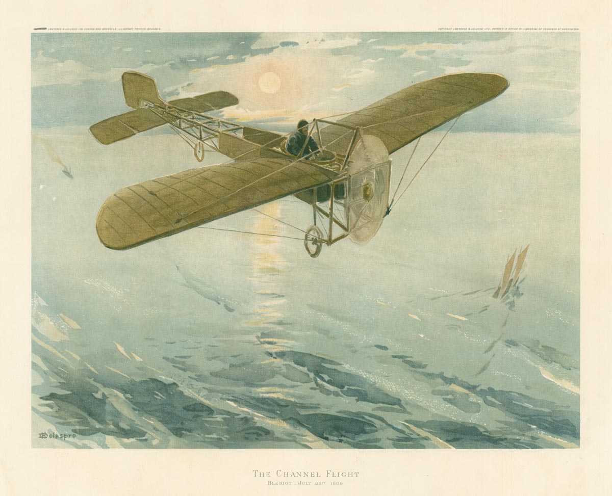 DESCRIPTION: J. L. Goffart, printer, Brussels. Drawn by H. Delaspre. Louis Bleriot (1872-1936) was an aviator, engineer, inventor and a noted pioneer in air racing. He is credited with making the first working monoplane. This image depicts his historic crossing of the English Channel, being first person to do so in an airplane.