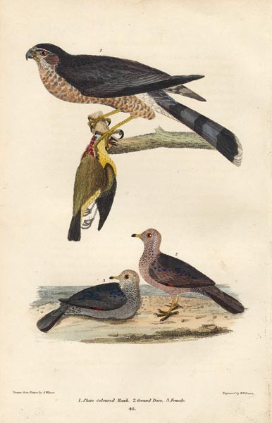 DESCRIPTION: From, American Ornithology; or, The Natural History of the Birds of the United States: Published in London & Edinburgh 1832. Alexander Wilson learned much of birding by John Bartram at the 'Botanic Garden' in Philadelphia. With the assistance of Mr. Bartram, Wilson learned to draw, identify and document different bird species. He soon set out to document every species of bird in North America. Nine volumes were published during his lifetime. C.L Bonaparte published a supplement in 1825-33, to complete what Wilson started, with prints by Titian Ramsey Peale and Alexander Rider. The octavo edition was published by William Jardine, with plates engraved by William Lizars, in 1832.