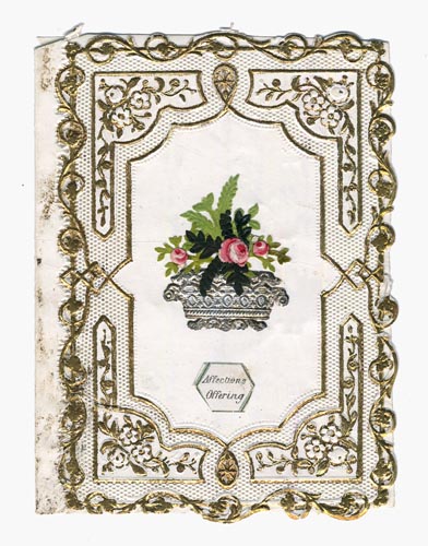 CONDITION: Good condition. Lace has small tear along fold line where it meets unembossed paper.