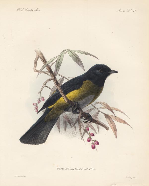 DESCRIPTION: From, "Biologia Centrali-Americana." Printed by Taylor and Francis. Red Lion Court, Fleet Street. Aves. Tab. 14. Hanhart imp. 86.