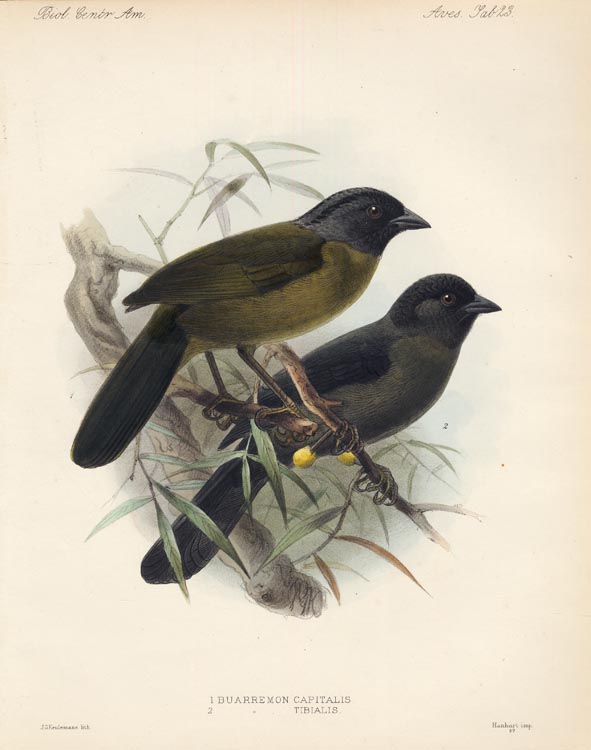 DESCRIPTION: From, "Biologia Centrali-Americana. Printed by Taylor and Francis. Red Lion Court, Fleet Street. Aves. Tab. 23. Hanhart imp. 69.