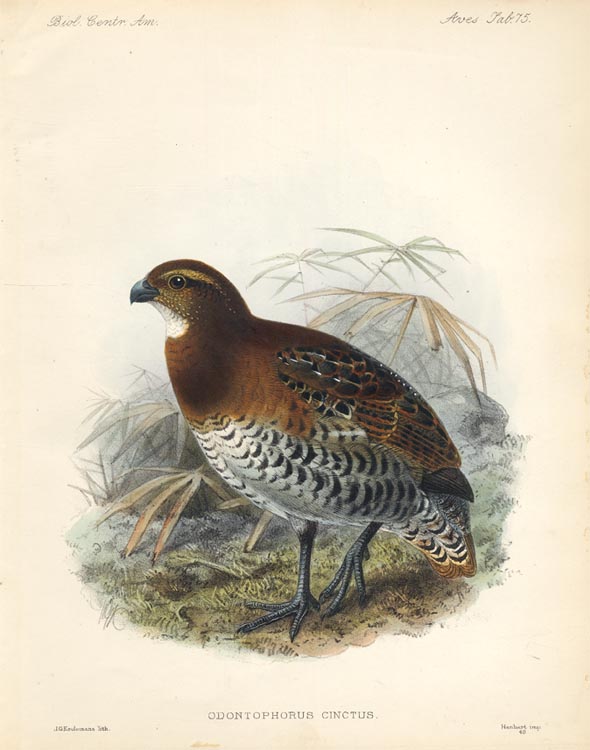 DESCRIPTION: From, "Biologia Centrali-Americana." Printed by Taylor and Francis. Red Lion Court, Fleet Street. Aves. Tab. 75. Hanhart imp. 48.