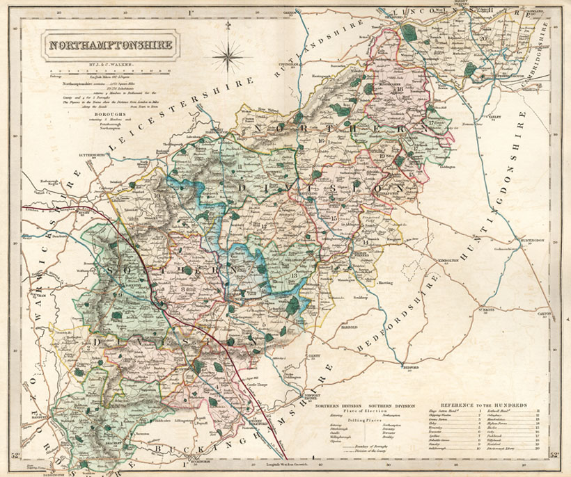 DESCRIPTION: A finely engraved map from Walkers "British Atlas, comprising seperate maps of each County in England,... Showing the roads, railways, canals, parks, boundaries of boroughs &c."