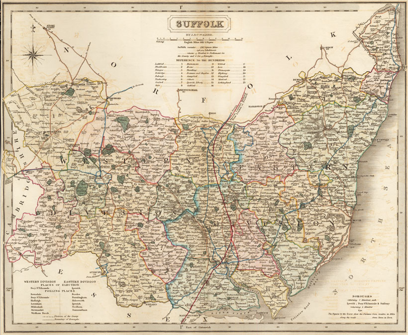DESCRIPTION: A finely engraved map from Walkers "British Atlas, comprising seperate maps of each County in England,... Showing the roads, railways, canals, parks, boundaries of boroughs &c."