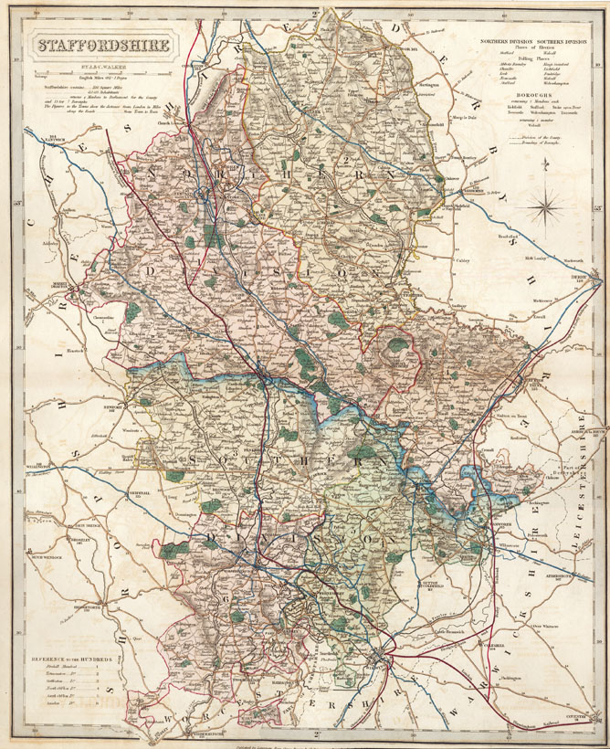 DESCRIPTION: A finely engraved map from Walkers "British Atlas, comprising seperate maps of each County in England,... Showing the roads, railways, canals, parks, boundaries of boroughs &c."