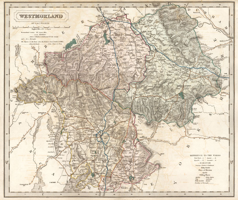 DESCRIPTION: A finely engraved map from Walkers "British Atlas, comprising seperate maps of each County in England,... Showing the roads, railways, canals, parks, boundaries of boroughs &c."