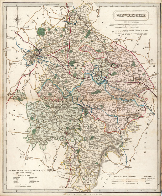 DESCRIPTION: A finely engraved map from Walkers "British Atlas, comprising seperate maps of each County in England,... Showing the roads, railways, canals, parks, boundaries of boroughs &c."