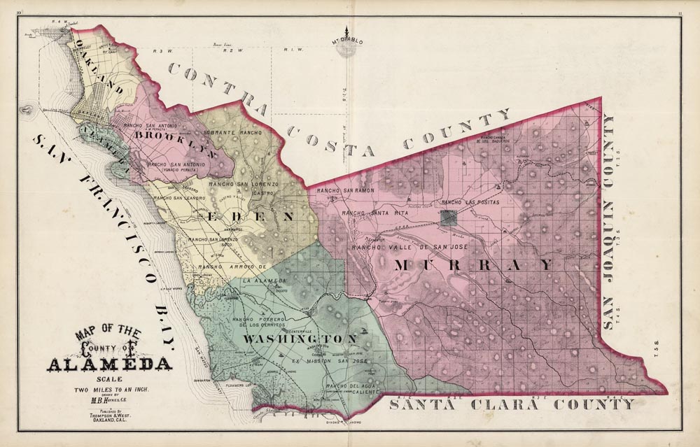 DESCRIPTION: A fine map of the county of Alameda. Appeared in "Official and Historical Atlas of Alameda County California. "