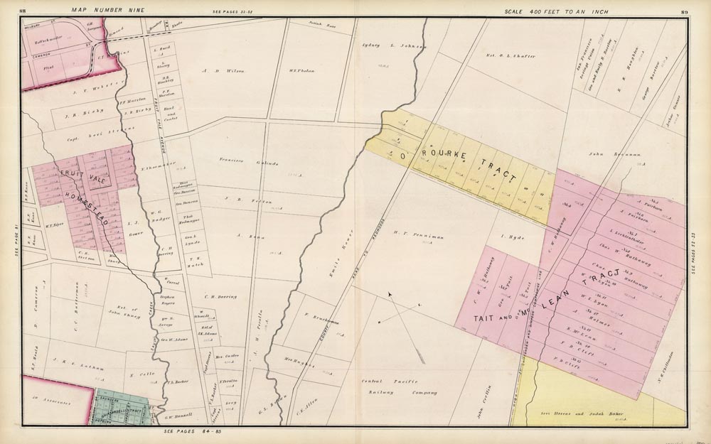 DESCRIPTION: An fine map showing outside the city limits. Appeared in "Official and Historical Atlas of Alameda County California. "