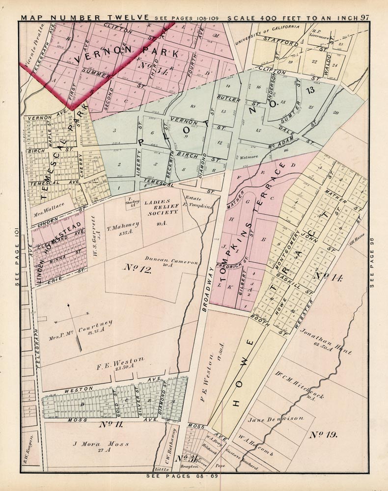 DESCRIPTION: An fine map showing outside the city limits. Appeared in "Official and Historical Atlas of Alameda County California. "