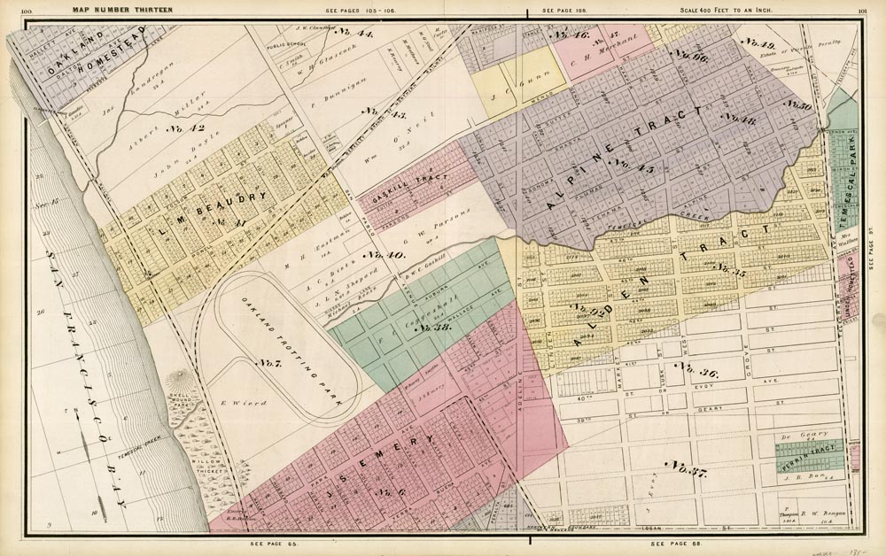 DESCRIPTION: An fine map showing outside the city limits. Appeared in "Official and Historical Atlas of Alameda County California. "