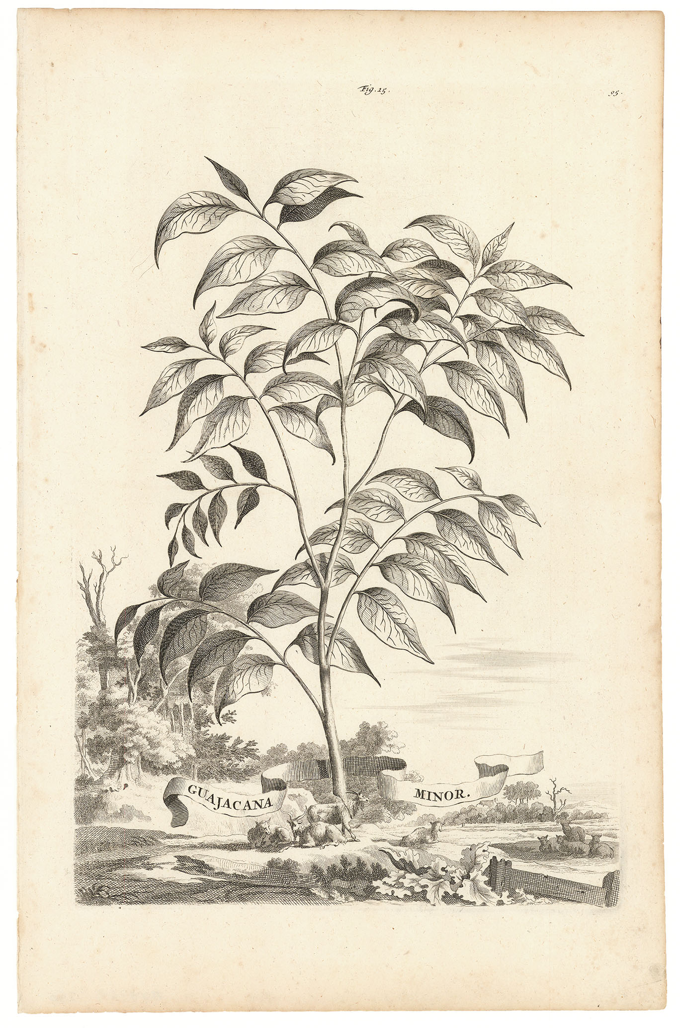 DESCRIPTION: Munting's engravings are distinguished by a unique style in which the plants are set in, or floating above, classical and idyllic landscape backgrounds. Often they are further ornamented with ribbons, plaques and architectural tablets. From "Phytographia Curiosa Exhibens Arborum, Futicum Herbarum AC Florum Icones..."