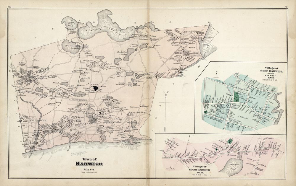 DESCRIPTION: A fine map from Walker's "Atlas of Barnstable County, Massachusetts. The Walker Company was formed in the late 1870's by George Hiram Walker and his brother Oscar. They were very prolific, publishing maps, atlases and bird's eye views of New England locales. This particular atlas of Cape Cod is one of the earliest of Walker's works and among the most difficult to find.